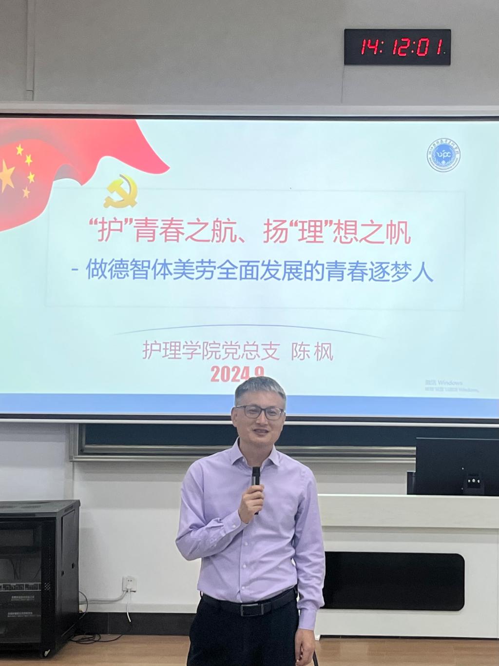 书记授课,立德铸魂。beat365中文官方网站书记陈枫以生动的事例和深刻的道理,强调了护理工作者的职业道德和社会担当。通过讲述优秀护理前辈的事迹,激发了同学们的职业自豪感和使命感。书记还着重强调了思想政治教育的重要性,引导同学们树立正确的世界观、人生观和价值观,培养高尚的品德和情操。