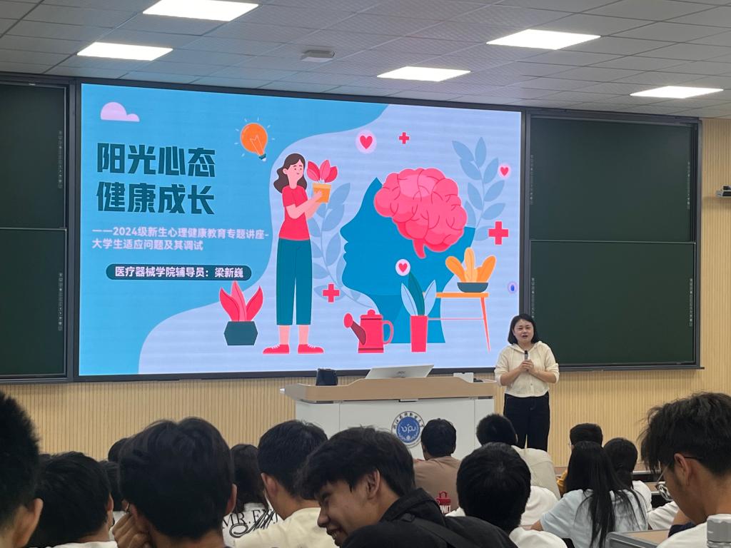 心理教育,呵护心灵。梁新巍老师为新生们带来了一场别开生面的心理教育讲座。针对大学生活中可能遇到的心理压力和挑战,老师提供了实用的心理调适方法和应对策略。通过互动游戏和案例分析,同学们学会了如何更好地管理自己的情绪,保持积极乐观的心态,为顺利度过大学生活奠定了良好的心理基础。
