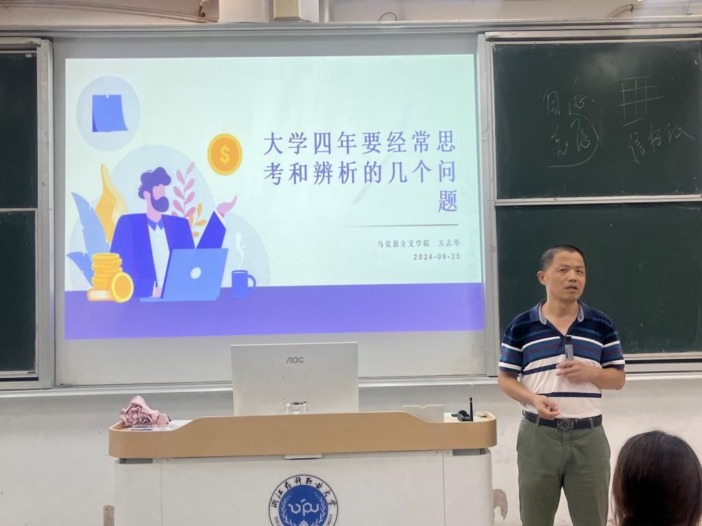 马克思主义学院教师方志华为同学们作题为“大学四年要经常思考和辨析的几个问题”讲座,启迪同学们思考“来药科大做什么?将来毕业后要成为一个什么样的人?”、“‘选择与努力’,哪个重要?”、“‘兴趣与专业’如何选择”、“知识与能力”等,希望同学们能够经常思考和辨析这些问题,不断地提升自己,为自己的未来打下坚实的基础,成为有理想、有道德、有文化、有纪律的社会主义建设者和接班人。