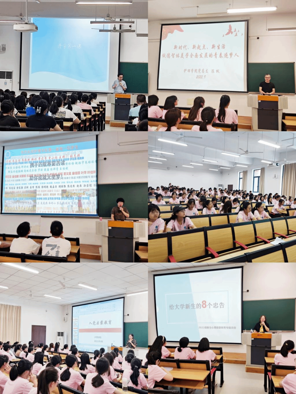 “几百年人家无非积善,第一等好事只是读书。”9月5日,院长孙瑜为新生讲授了开学第一课,带领新生感悟医学的“大爱”,明晰护理工作的精神坐标和价值追求。他强调,在新的旅途中要有创新精神,坚持做到敢为人先、抬头看路、埋头苦学;要坐得住冷板凳,耐得住寂寞,禁得住诱惑;要有担当精神,敢于担当重任,把个人理想追求融入到党和国家的事业中去。此外,他积极鼓励新生要传承“厚德厚朴,励志远志”校训精神,培植忘我、奉献、济世的职业情操,涵养仁心仁术的职业精神,肩负新时代护理人敬畏生命、守护健康的光荣职责。