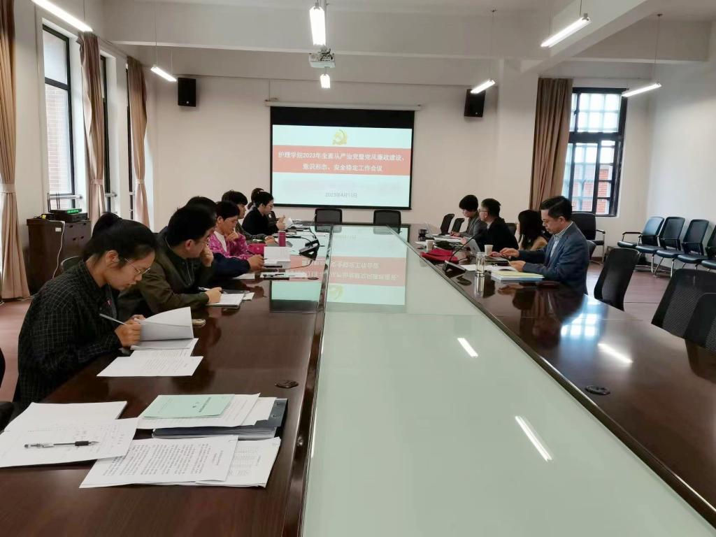 全面从严治党暨党风廉政建设、意识形态、安全稳定工作会议。校党委委员、办公室主任张佳佳及学院领导班子、教职工出席会议。会议由学院党总支书记陈枫主持。
