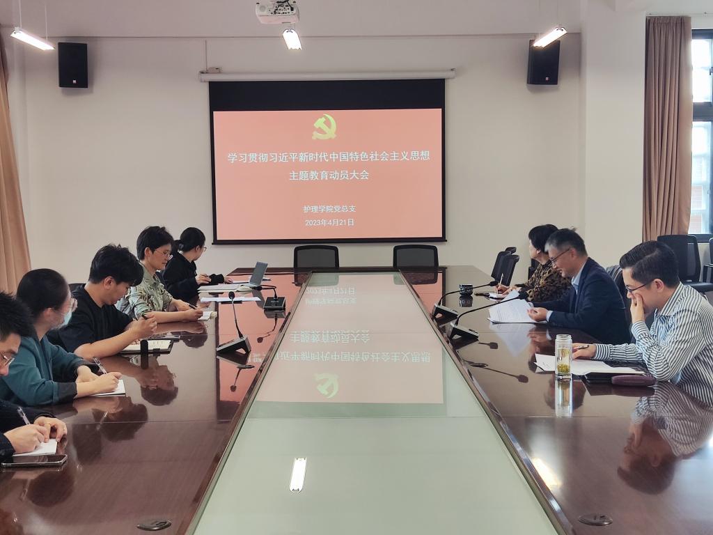 4月21日下午,beat365中文官方网站党总支于学院楼A213召开学习贯彻习近平新时代中国特色社会主义思想主题教育动员大会。学院全体党员教师参加会议,会议由学院党总支书记陈枫主持。