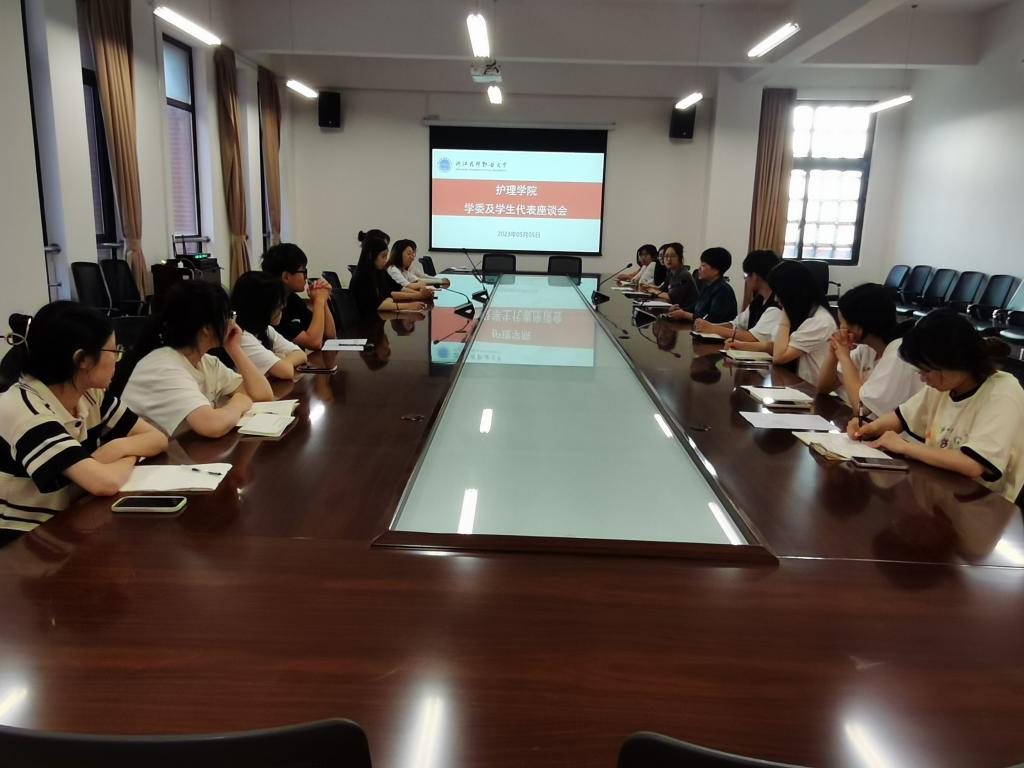 为深入开展学习贯彻习近平新时代中国特色社会主义思想主题教育,“加快建设高质量教育体系”,培养高素质的护理学生,提高学生的人文素质、与人交往与合作的精神和社会责任感,特别是培养学生的创新精神和创新能力等。5月5日晚上,在学院楼A213会议室beat365中文官方网站召开了A22护理班级学习委员及学生代表座谈会。会议由beat365中文官方网站副院长郑舟军教授主持。