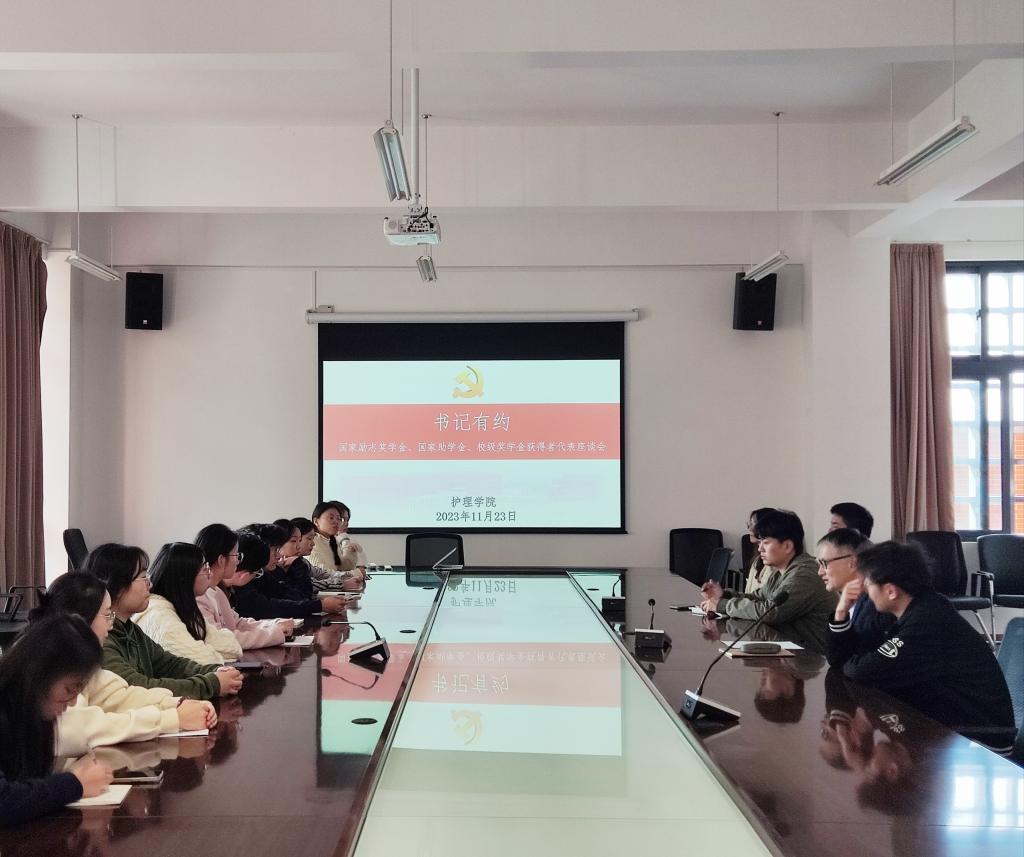 11月23日下午,beat365中文官方网站于学院楼A213会议室开展十一月“书记有约”活动暨国家励志奖学金、国家助学金、校级奖学金获得者代表座谈会。beat365中文官方网站党总支书记陈枫、辅导员王子轩、王静雯及相关学生代表参加本次会议,会议由beat365中文官方网站党总支书记陈枫主持。