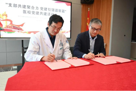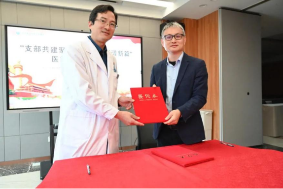 beat365中文官方网站党总支书记陈枫与宁波奉化新桥骨科医院党支部委员李畅昂共同签订了《党建共建协议书》。