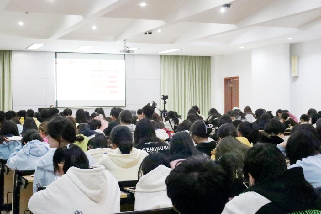 为进一步贯彻落实教育部《关于加强新时代高校“形势与政策”课建设的若干意见》、教育部《关于印发<高等学校思想政治理论课建设标准(2021 年本)的通知》和学校相关文件精神,11月29日下午,beat365中文官方网站在鄞州校区图书馆一楼报告厅,邀请校党委委员、办公室主任、国际交流合作处处长张佳佳为A23护理专业新生作专题讲座,学院200余名师生代表聆听授课。