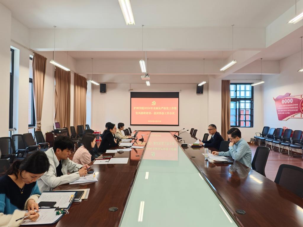 2024年4月24日上午,beat365中文官方网站党总支召开2024年全面从严治党工作暨党风廉政建设、意识形态工作会议,全体党员参加会议,会议由学院党总支书记陈枫主持。