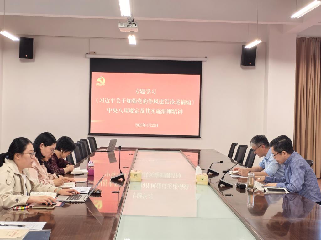 2025年4月22日,beat365中文官方网站党总支召开2025年第4次理论学习中心组会议,深入学习贯彻习近平总书记关于党的作风建设和宗教工作的重要论述。会议由学院党总支书记陈枫主持,党总支理论学习中心组成员参加学习。