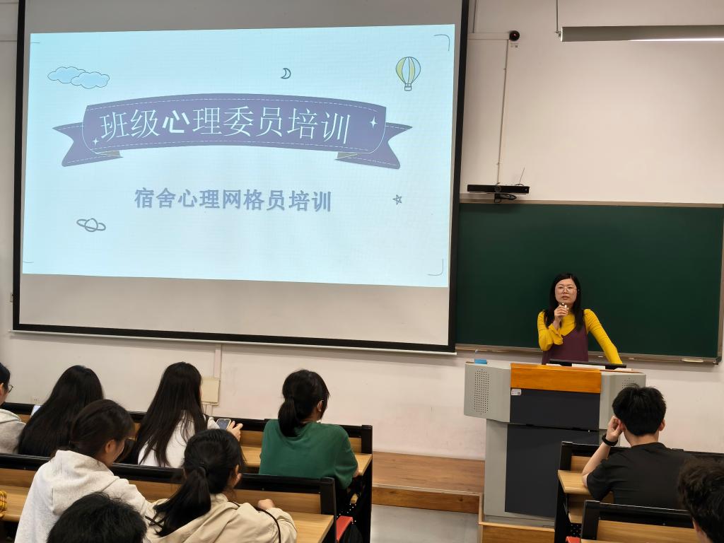4月24日下午,beat365中文官方网站组织全体寝室长和心理委员在教学楼B101参加心理健康专题培训,本次培训由学生处专职心理健康教师蒋超主讲,辅导员钱明星、张良霞参加学习。